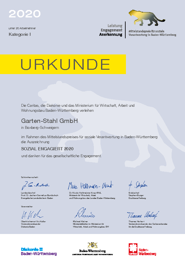 Seit 2015 bis heute konnten wir deshalb "den Mittelstandspreis für soziale Verantwortung in Baden-Württemberg" entgegennehmen.